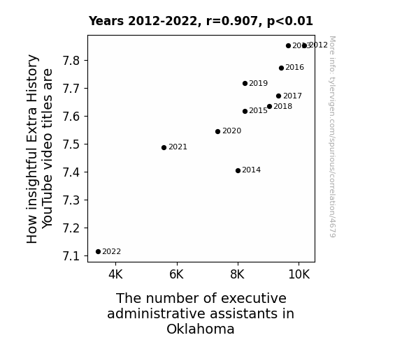 "Evaluating the Correlation between the Insightfulness of Extra History YouTube Video Titles and the Number of Executive Administrative Assistants in Oklahoma: A Serious Study with a Silly Twist"