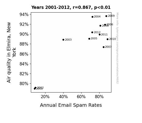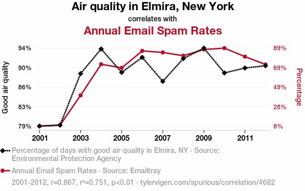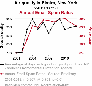- The spurious research paper: Clearing the Air: A Breath of Fresh Spam? Exploring the Correlation between Air Quality in Elmira, New York and Annual Email Spam Rates