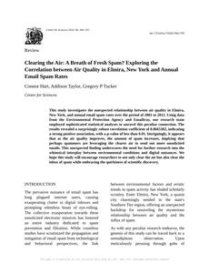 Clearing the Air: A Breath of Fresh Spam? Exploring the Correlation between Air Quality in Elmira, New York and Annual Email Spam Rates The Journal of Ecological Informatics Jan 2024 Reminder: This paper is AI-generated. Not real! |