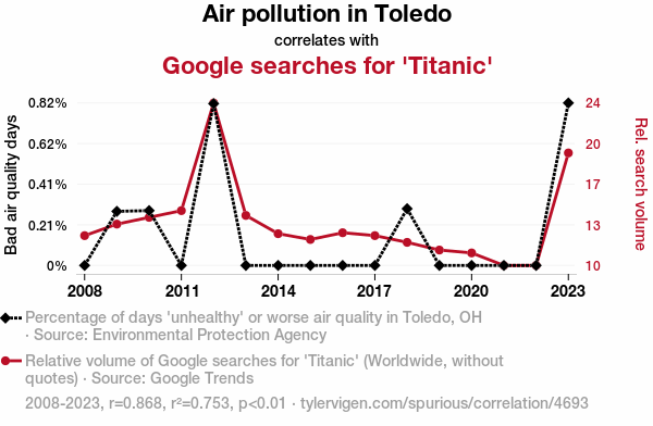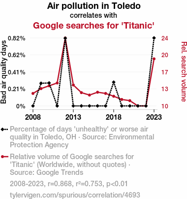 - The spurious research paper: Toxic Toledo Air and Titanic Trend Searches: A Tale of Sorrow and Search History Tomorrow