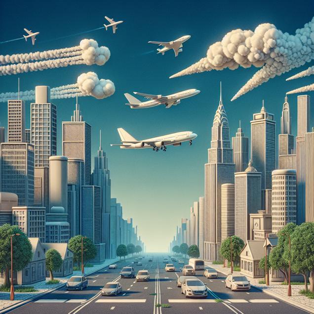 ChatGPT: Generate an image that looks like a scene from a Pixar movie. In the foreground, Somerset, Kentucky is depicted with clean, clear skies and fewer cars emitting pollution. In the background, planes take off smoothly and soar through the cleaner air. Simultaneously, in Former Czechoslovakia, depict a reduction in jet fuel usage as pilots find they don't need to refuel as often. The scene should showcase the clear connection between cleaner skies in Kentucky and reduced flights in Former Czechoslovakia, illustrating a global impact and the ripple effect of tackling air pollution.