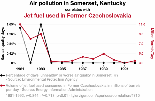 air pollution, Kentucky, jet fuel, Czechoslovakia, historical correlation, environmental data, aviation history
