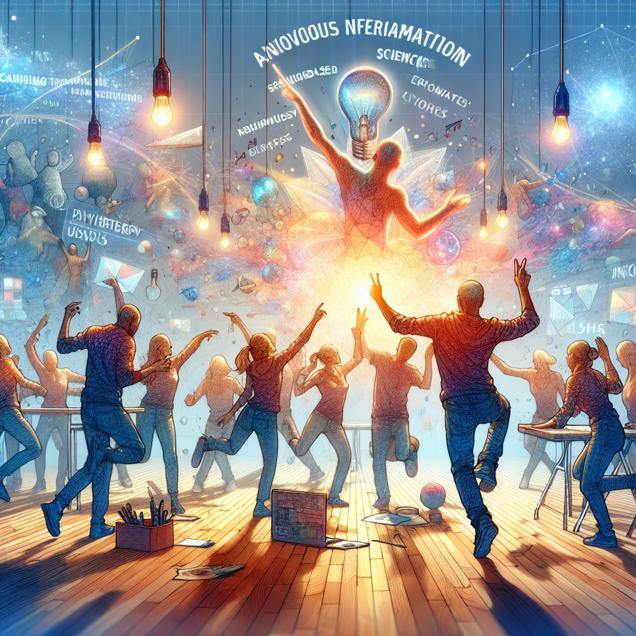Prompt: [ Cutsy graphics ] Generate an image of AsapSCIENCE creators brainstorming in a vibrant New York City dance studio. The physical therapist aides move with the rhythm, filled with energy and excitement. New video titles and concepts are formed as they draw inspiration from the infectious groove in the studio. The scene captures the dynamic atmosphere, blending the creativity of the AsapSCIENCE team with the rhythmic joy of the bustling dance floor. The depiction should include only scenes, people, and objects, it should not include text or speech bubbles.