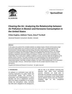 Clearing the Air: Analyzing the Relationship between Air Pollution in Boston and Kerosene Consumption in the United States The Journal of Environmental Quirks and Quandaries Jan 2024 Reminder: This paper is AI-generated. Not real! |