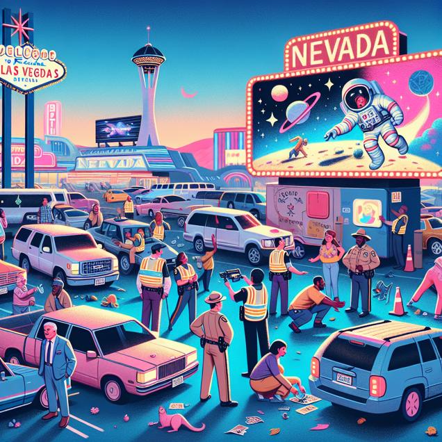 ChatGPT: In a bustling Nevada parking lot, flashy SciShow Space video titles light up a giant screen, luring in a crowd of curious onlookers. Meanwhile, a team of parking enforcement workers diligently patrol the lot, handing out tickets to confused, frustrated drivers who struggle to find a spot amidst the chaos.