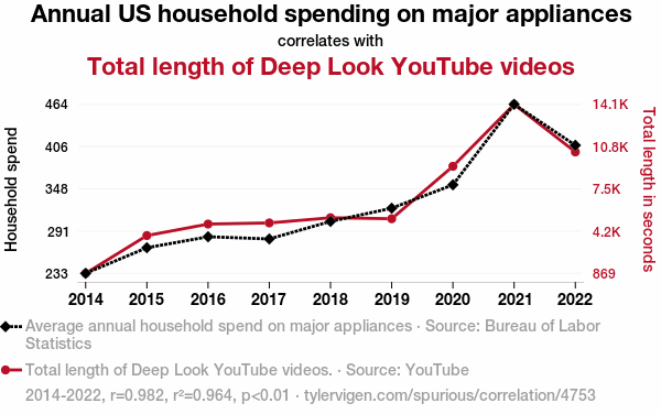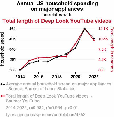 - The spurious research paper: The Great Appliance Adventure: Exploring the Link Between Household Spending and Deep Look Length