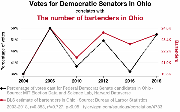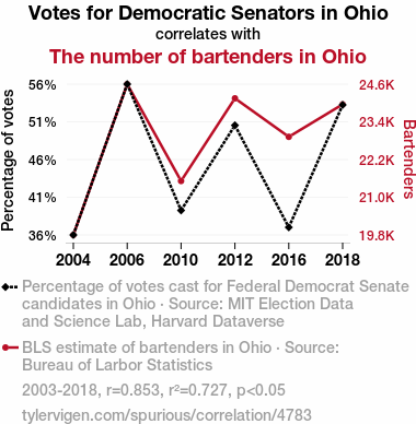 - The spurious research paper: Shaking Up the Political Brew: A Spirited Connection Between Democrat Votes and Bartenders in Ohio