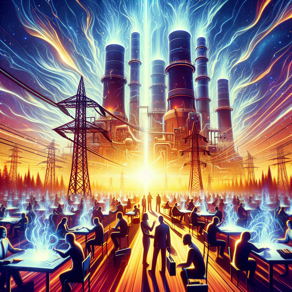 Prompt: Generate an image that captures the essence of bustling energy, combining the vibrant power plants of Angola with the dynamic dialogue flooding SmarterEveryDay's YouTube videos. The scene should glow with the electric excitement, symbolizing the lively exchange of ideas sparked by the very essence of electricity. Focus on capturing the luminous glow of the power plants against the backdrop of vibrant conversation in the online space, evoking the exhilarating atmosphere of a Disney movie scene. The depiction should include only scenes, people, and objects, it should not include text or speech bubbles.
