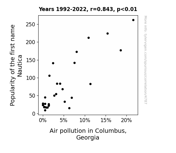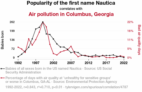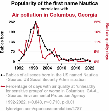 - The spurious research paper: Nautical Nomenclature: Exploring the Correlation between the Popularity of the Name Nautica and Air Pollution in Columbus, Georgia