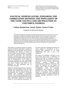Nautical Nomenclature: Exploring the Correlation between the Popularity of the Name Nautica and Air Pollution in Columbus, Georgia The Maritime Metropolis Journal Jan 2024 Reminder: This paper is AI-generated. Not real! |