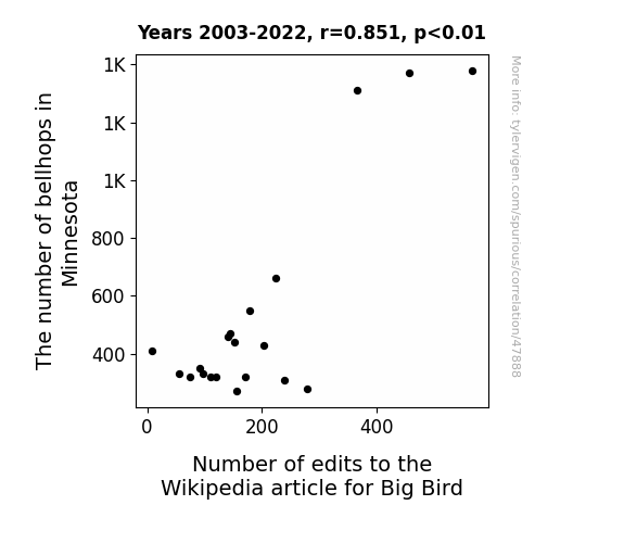 See what else correlates with Number of edits to the Wikipedia article for Big Bird