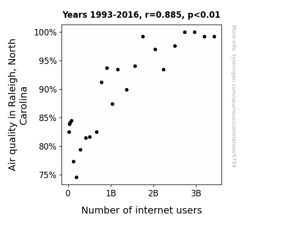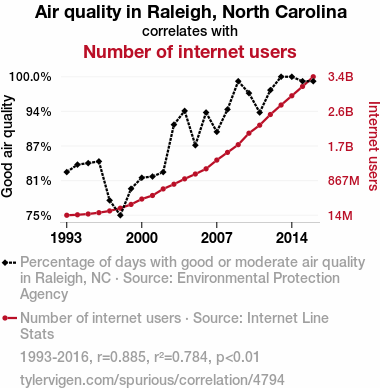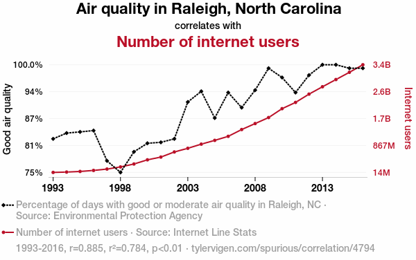- The spurious research paper: Clearing the Air: Examining the Correlation Between Air Quality in Raleigh, North Carolina, and the Rise of Internet Users