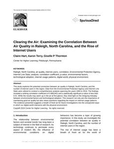 Clearing the Air: Examining the Correlation Between Air Quality in Raleigh, North Carolina, and the Rise of Internet Users The Journal of Comedic Environmental Studies Jan 2024 |
