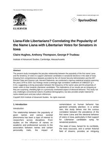 Liana-Fide Libertarians? Correlating the Popularity of the Name Liana with Libertarian Votes for Senators in Iowa The Journal of Political Nameology Jan 2024 |