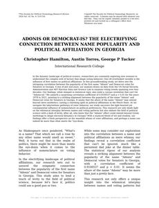 Adonis or Democrat-is? The Electrifying Connection Between Name Popularity and Political Affiliation in Georgia The Journal of Political Nomenclature and Socioelectoral Dynamics Jan 2024 Reminder: This paper is AI-generated. Not real! |