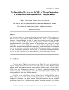 The Tantalizing Ties between the Tally of Takeout Technicians in Missouri and the Length of Vihart Vlogging Videos