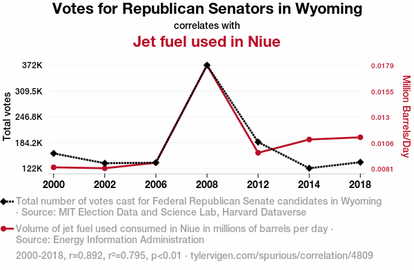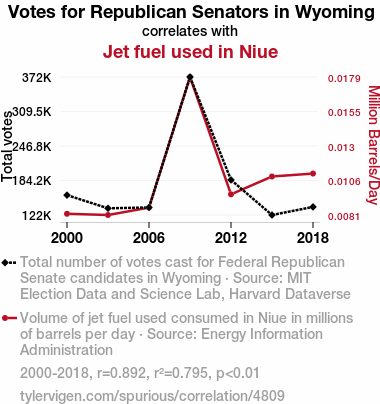 - The spurious research paper: Flying High: The Link Between Wyoming's GOP Votes and Niue's Jet Fuel Use