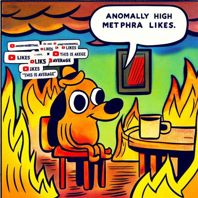 Create a meme inspired by the this is fine meme that in some way references The average number of likes on LEMMiNO YouTube videos. Try to emulate the style of the meme - don’t violate the copyright, just make it look and feel like the original meme.