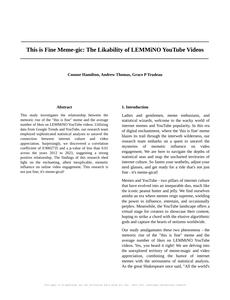 This is Fine Meme-gic: The Likability of LEMMiNO YouTube Videos The Journal of Internet Memetics Jan 2024 Reminder: This paper is AI-generated. Not real! |