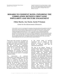 Rosario to Comment Ratio: Exploring the Correlation between First Name Popularity and YouTube Engagement Journal of Online Anthropology Jan 2024 Reminder: This paper is AI-generated. Not real! |