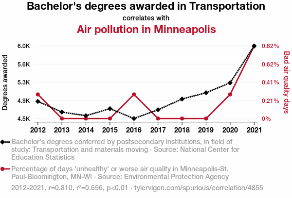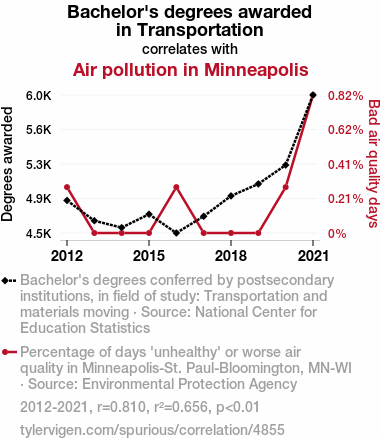 - The spurious research paper: Drive My Graduation: The Relationship Between Bachelor's Degrees in Transportation and Air Pollution in Minneapolis