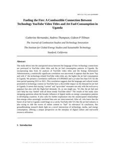 Fueling the Fire: A Combustible Connection Between Technology YouTube Video Titles and Jet Fuel Consumption in Uganda The Journal of Combustion Studies and Technology Innovation Jan 2024 Reminder: This paper is AI-generated. Not real! |