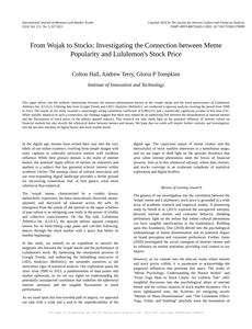From Wojak to Stocks: Investigating the Connection between Meme Popularity and Lululemon's Stock Price International Journal of Memetics and Market Trends Jan 2024 Reminder: This paper is AI-generated. Not real! |