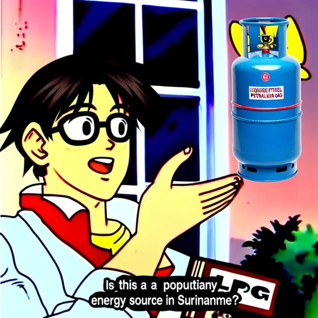 Create a meme inspired by the is this a pigeon meme that in some way references Liquefied petroleum gas used in Suriname. Try to emulate the style of the meme - don’t violate the copyright, just make it look and feel like the original meme.