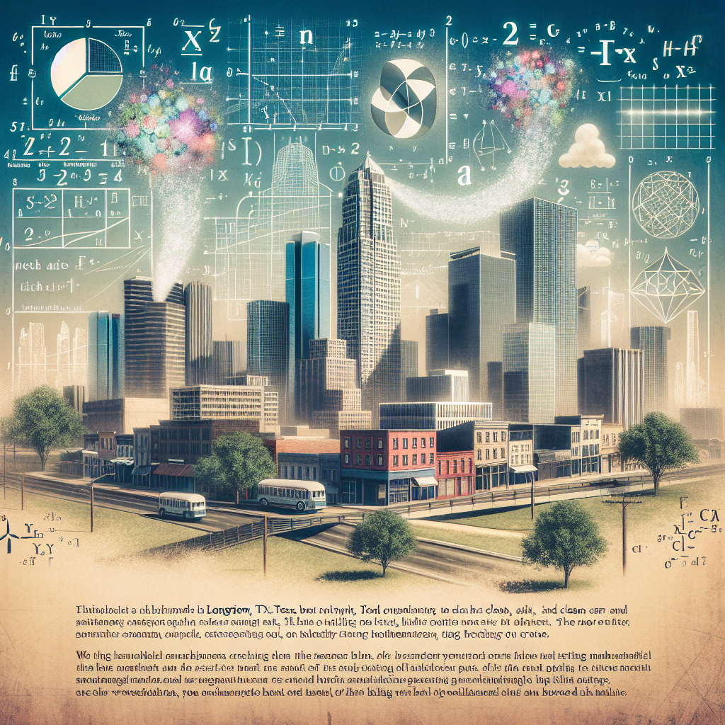 Prompt: Generate an image representing a futuristic and bustling cityscape of Longview, Texas, with clean, smog-free skies and a hint of technological advancement. Overlay this scene with elements representing mathematical quirks and puns, indicating the influence on the video titles from Numberphile headquarters. The artwork should subtly suggest the correlation between the reduction in air pollution and the increase in quirky video titles, conveying Longview as a prime number place to live through art and cyber aesthetics. The depiction should include only scenes, people, and objects, it should not include text or speech bubbles.