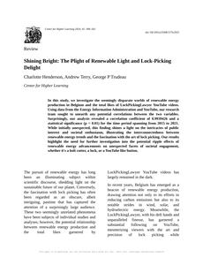 User prompt: Please provide potential search keywords for a paper titled Shining Bright: The Plight of Renewable Light and Lock-Picking Delight with an abstract of In this study, we investigate the seemingly disparate worlds of renewable energy production in Belgium and the total likes of LockPickingLawyer YouTube videos. Using data from the Energy Information Administration and YouTube, our research team sought to unearth any potential correlations between the two variables. Surprisingly, our analysis revealed a correlation coefficient of 0.9939426 and a statistical significance (p < 0.01) for the time period spanning from 2015 to 2021. While initially unexpected, this finding shines a light on the intricacies of public interest and societal enthusiasm, illustrating the interconnectedness between renewable energy trends and the fascination with the art of lock picking. Our results highlight the need for further investigation into the potential ripple effects of renewable energy advancements on unexpected facets of societal engagement, whether it's a bolt cutter, a lock, or a YouTube like button.