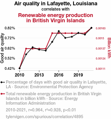 - The spurious research paper: Clearing the Air: A Breath of Fresh Data on the Relationship Between Air Quality in Lafayette, Louisiana and Renewable Energy Production in British Virgin Islands