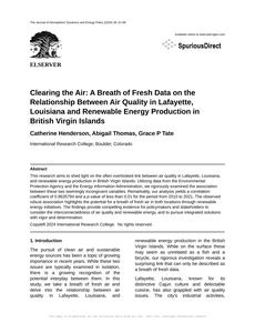 Please draft the title and abstract of an academic research paper presenting the findings of the connection between Air quality in Lafayette, Louisiana and Renewable energy production in British Virgin Islands. Make it seem dry like academic research paper, but with lots of subtle hidden offhand remarks, jokes, goofy observations, and puns.