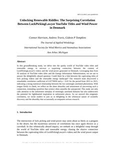 Unlocking Renewable Riddles: The Surprising Correlation Between LockPickingLawyer YouTube Titles and Wind Power in Denmark The Journal of Applied Windology Jan 2024 Reminder: This paper is AI-generated. Not real! |