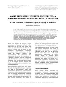 "Game Theorists' YouTube Trendiness: A Biomass-Powering Connection in Tanzania"