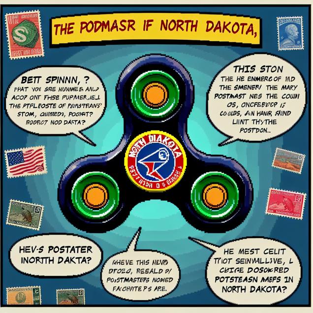 Create a meme inspired by the fidget spinner meme that in some way references The number of postmasters in North Dakota. Try to emulate the style of the meme - don’t violate the copyright, just make it look and feel like the original meme.