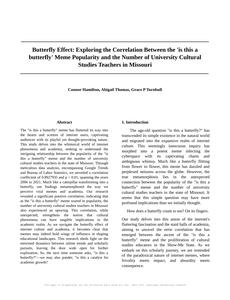 Butterfly Effect: Exploring the Correlation Between the 'is this a butterfly' Meme Popularity and the Number of University Cultural Studies Teachers in Missouri The Journal of Internet Memetics and Cultural Analysis Jan 2024 Reminder: This paper is AI-generated. Not real! |