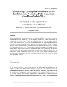 Unlucky Linkage: Exploring the Correlation between 'Bad Luck Brian' Meme Popularity and Total Comments on MinutePhysics YouTube Videos Journal of Internet Culture and Memetics Jan 2024 Reminder: This paper is AI-generated. Not real! |