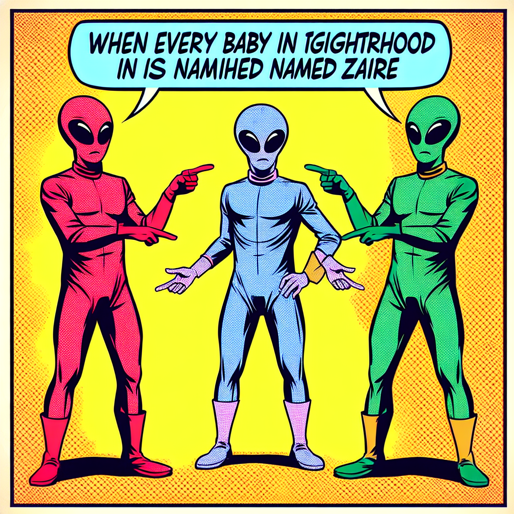 Create a meme inspired by the spiderman pointing meme that in some way references Popularity of the first name Zaire. Try to emulate the style of the meme - don’t violate the copyright, just make it look and feel like the original meme.