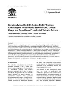 "Genetically Modified Oh-Cotton-Pickin' Politics: Analyzing the Relationship Between GMO Cotton Usage and Republican Presidential Votes in Arizona"