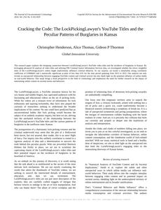 Cracking the Code: The LockPickingLawyer's YouTube Titles and the Peculiar Patterns of Burglaries in Kansas The Journal of Unconventional Criminology Jan 2024 Reminder: This paper is AI-generated. Not real! |