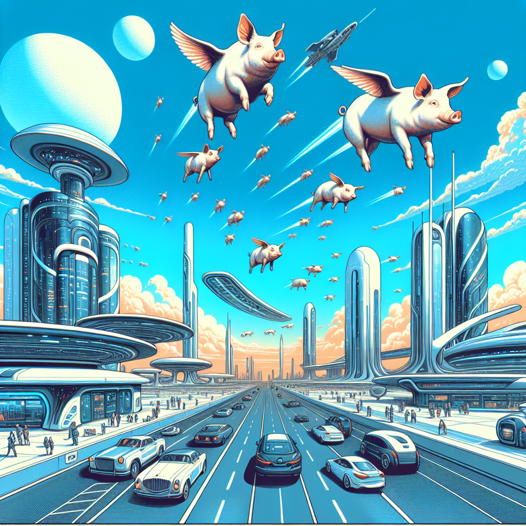 ChatGPT: Generate an image that resembles a scene from 'Star Wars', showing a vast, futuristic cityscape with sleek buildings and vehicles as well as a clear blue sky. In the sky, there are flying pigs gliding gracefully above the city, adding a touch of whimsy to the sci-fi setting. The pigs are playfully interacting with the futuristic surroundings, giving the scene an otherworldly yet lighthearted ambiance.