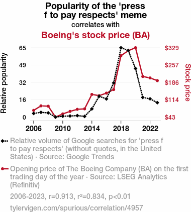 - The spurious research paper: From lol to low: The Popularity of the 'press f to pay respects' meme and its Impact on Boeing's Stock Price