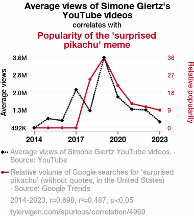 - The spurious research paper: The Meme Machine: A Surprising Connection Between Simone Giertz's Average YouTube Views and the Popularity of the 'Surprised Pikachu' Meme