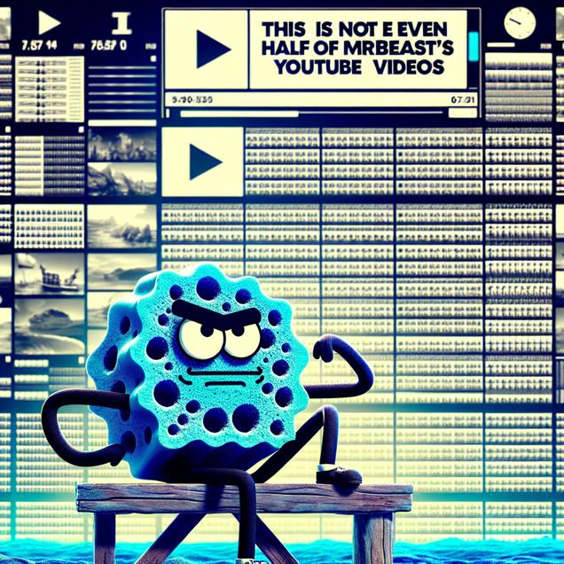 Create a meme inspired by the mocking spongebob meme that in some way references Total length of MrBeast YouTube videos. Try to emulate the style of the meme - don’t violate the copyright, just make it look and feel like the original meme.
