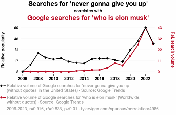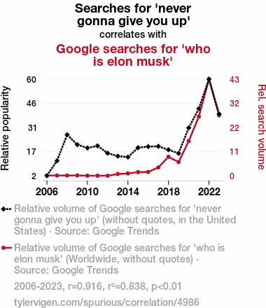 - The spurious research paper: Rickrolling Over Elon: A Meme-orable Correlation