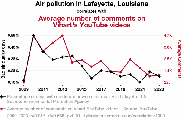 - The spurious research paper: Lafayette's Lousy Air: Linking Air Pollution with Vihart's Video Views
