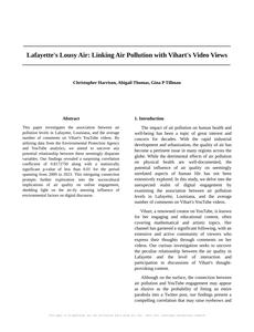 Lafayette's Lousy Air: Linking Air Pollution with Vihart's Video Views Journal of Environmental Psychology Jan 2024 Reminder: This paper is AI-generated. Not real! |