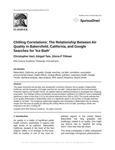 User prompt: Please provide potential search keywords for a paper titled Chilling Correlations: The Relationship Between Air Quality in Bakersfield, California, and Google Searches for 'Ice Bath' with an abstract of This paper examines the peculiar and unexpected connection between the air quality in Bakersfield, California, and the frequency of Google searches for 'ice bath'. Utilizing data from the Environmental Protection Agency and Google Trends, we applied rigorous statistical analysis to investigate this intriguing association. Our findings reveal a remarkably strong correlation coefficient of 0.8981417 and a statistically significant p-value of less than 0.01 for the period spanning from 2004 to 2023.