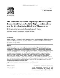 The Meme of Educational Popularity: Unraveling the Connection Between Master's Degrees in Education and the 'Overly Attached Girlfriend' Phenomenon The Journal of Memetic Studies Jan 2024 Reminder: This paper is AI-generated. Not real! |