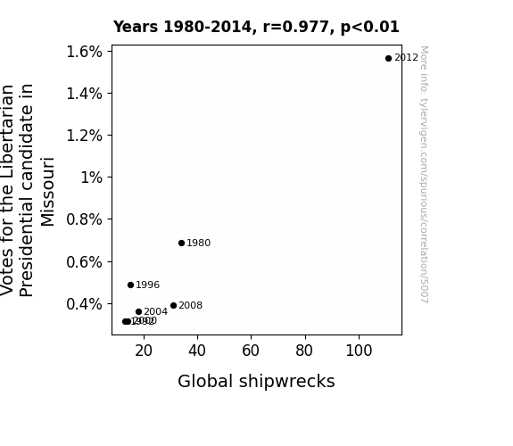 - The spurious research paper: Navigating the Nexus: Exploring the Interplay between Votes for the Libertarian Presidential Candidate in Missouri and Global Shipwrecks